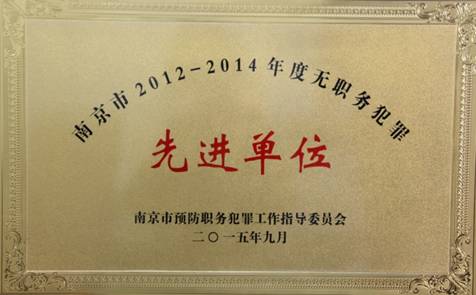 • 南京市2012——2014年度無職務犯罪先進單位